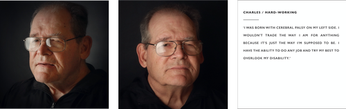 My inspiration began at Camp CAMP (Children’s Association for Maximum Potential) – a camp for individuals with disabilities. There, I had the opportunity to see a singular beauty and strength everyone should experience at some point in their lives. I titled the photographic exhibition “Invisible - Making the Invisible Visible” to shine a light on the subjects’ character rather than their disability. I used a black background in the portraits to represent this feeling of invisibility and isolation. The contrast between the dark background and the bright light on the subjects’ faces draws the viewer’s attention to that person’s essence, instead of their disability. We should look to these individuals as role models, as they truly live their lives to the fullest potential.